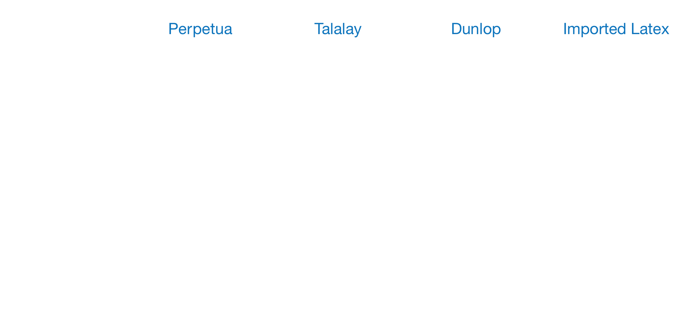 | Perpetua | Talalay | Dunlop | Imported Latex | |